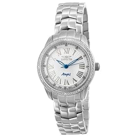 The elegant Women's Wildflower Diamond Stainless Steel Watch #5058 from Invicta shows off your eye for spectacular details. Featuring a stainless steel bezel set with diamonds surrounding a white dial with slim, deep blue hands and Roman numerals indices, this glamorous accessory is a functional edition to any fashionable wardrobe. Also offering a stainless steel case, bracelet band with deployment clasp, flame-fusion crystal, and reliable Swiss-quartz movement, this precisely-crafted watch is set to stand the test of time. This watch is water resistant to 165 feet. Wildflower Collection